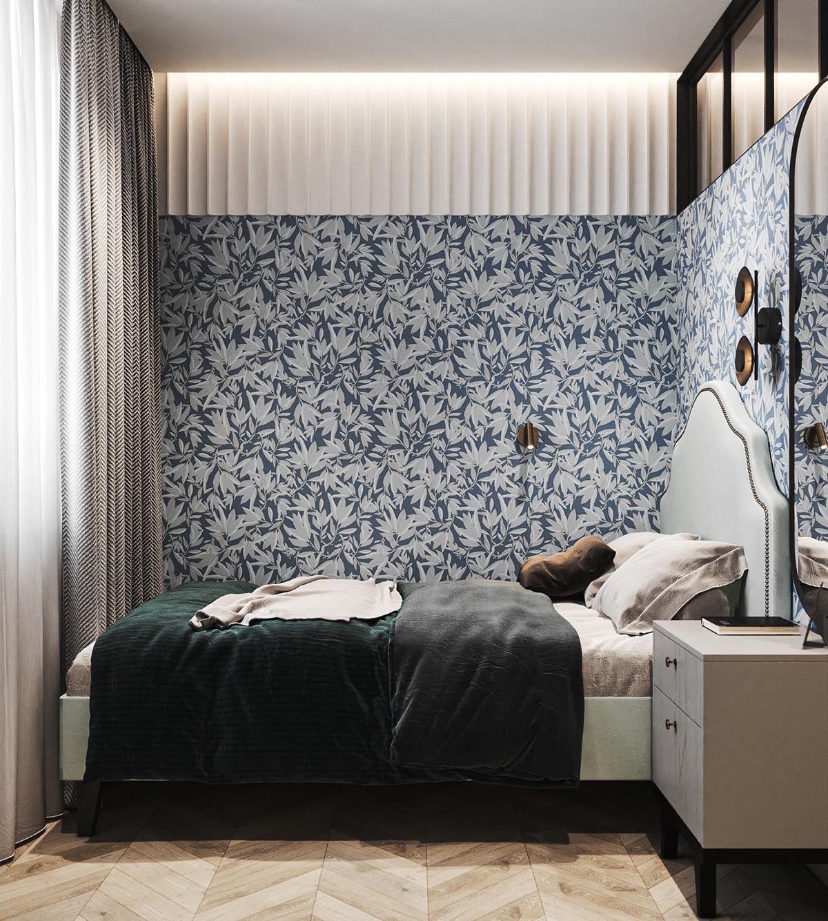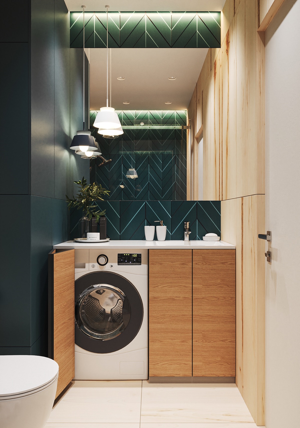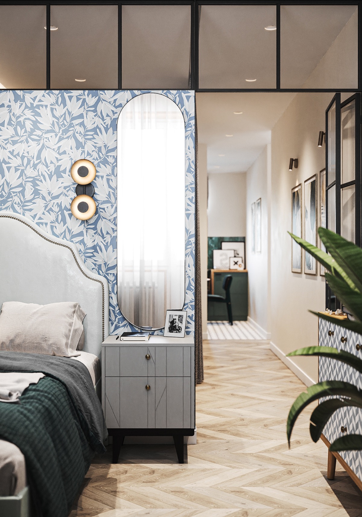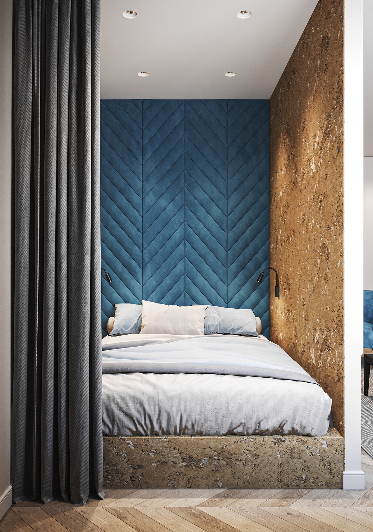 Захватывающие интерьеры с синими и зелеными акцентами до 55 кв. м (с планами этажей)