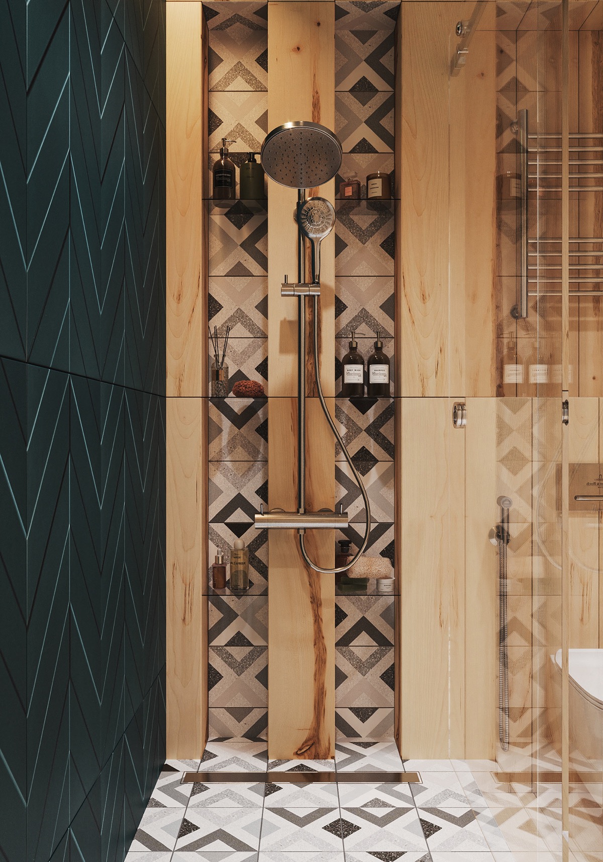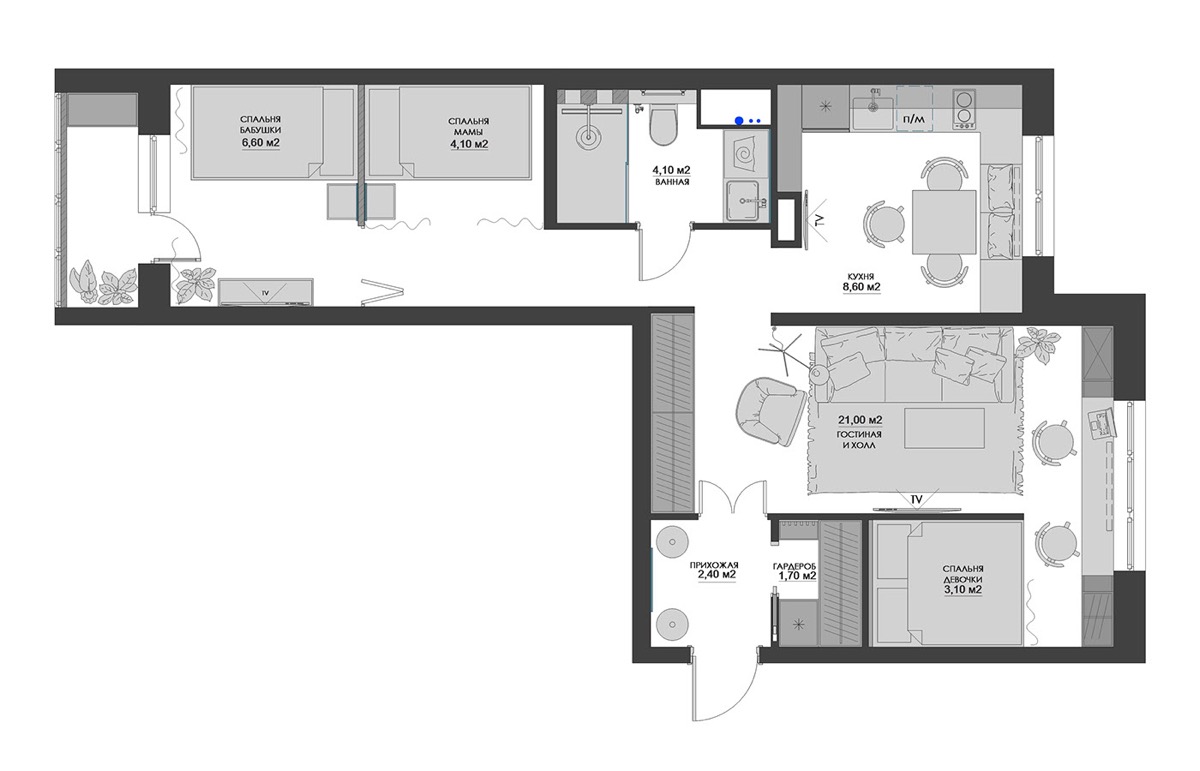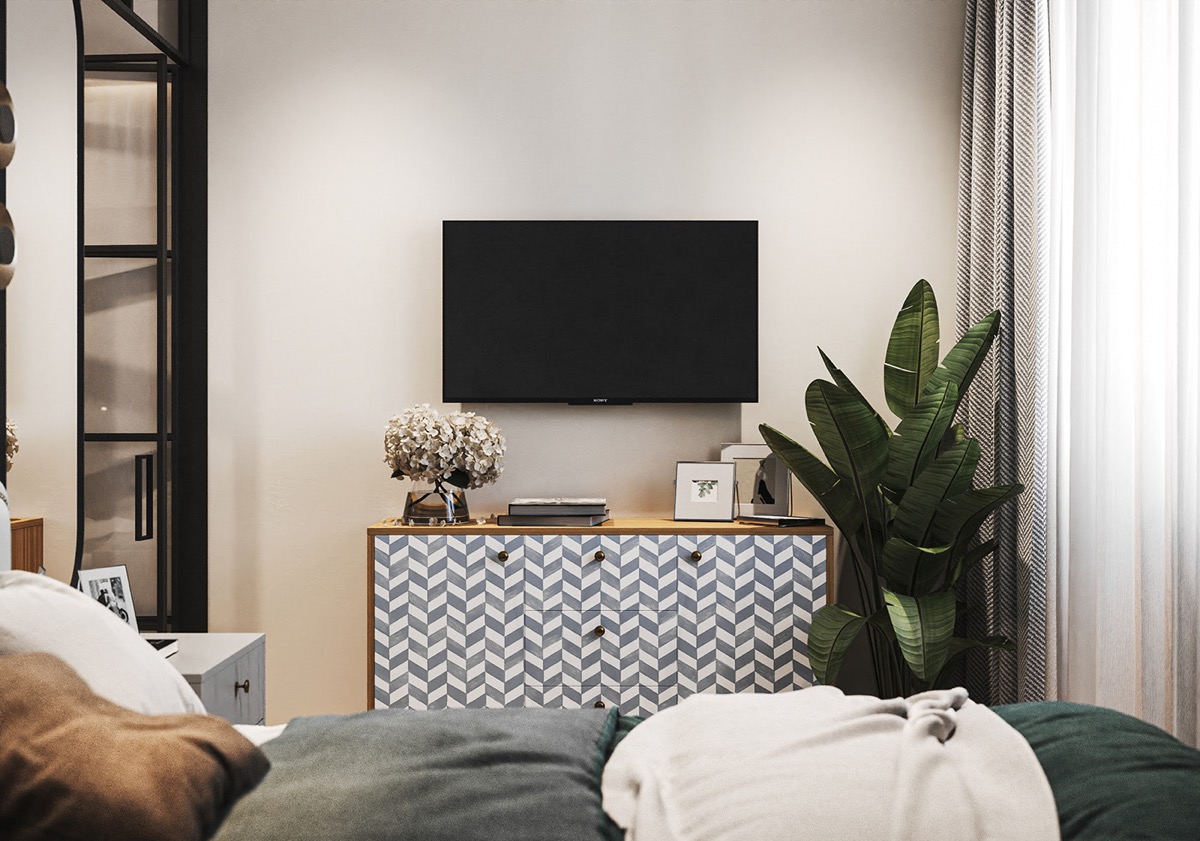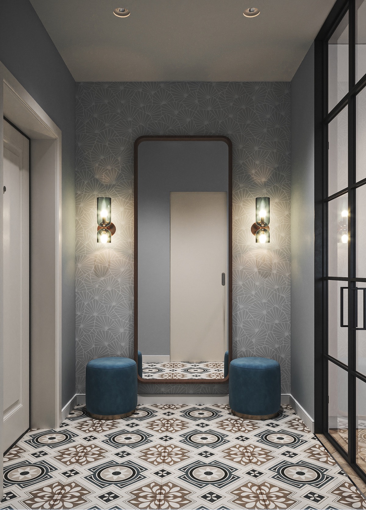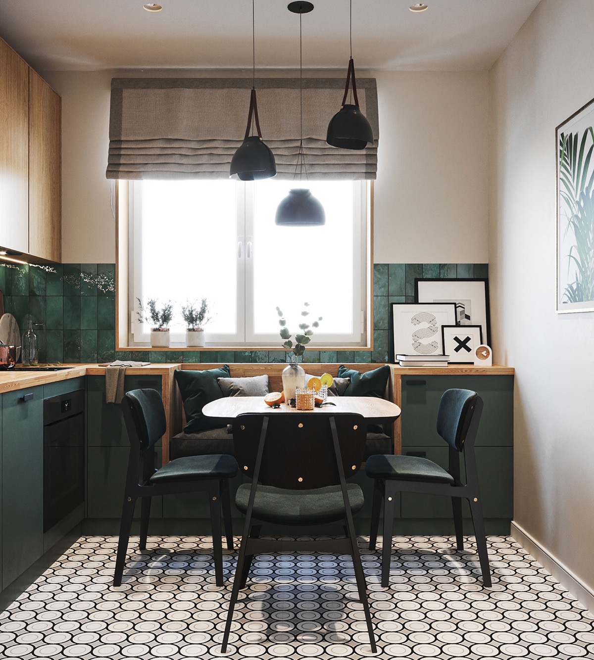 Захватывающие интерьеры с синими и зелеными акцентами до 55 кв. м (с планами этажей)
